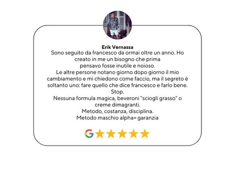 Infatti voglio farti dire com'è DAVVERO il Metodo Maschio Alpha ed il Check-Up Pancia, da chi, prima di te, ha deciso di affidarsi a me ed al mio Sistema.