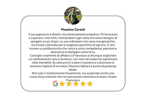 • Decine di prove schiaccianti su Google: Non devi credere a me, ma ai numeri. Le decine di recensioni a 5 stelle certificate su Google sono la prova sociale che il mio sistema funziona davvero nella vita reale, non solo sulla carta.